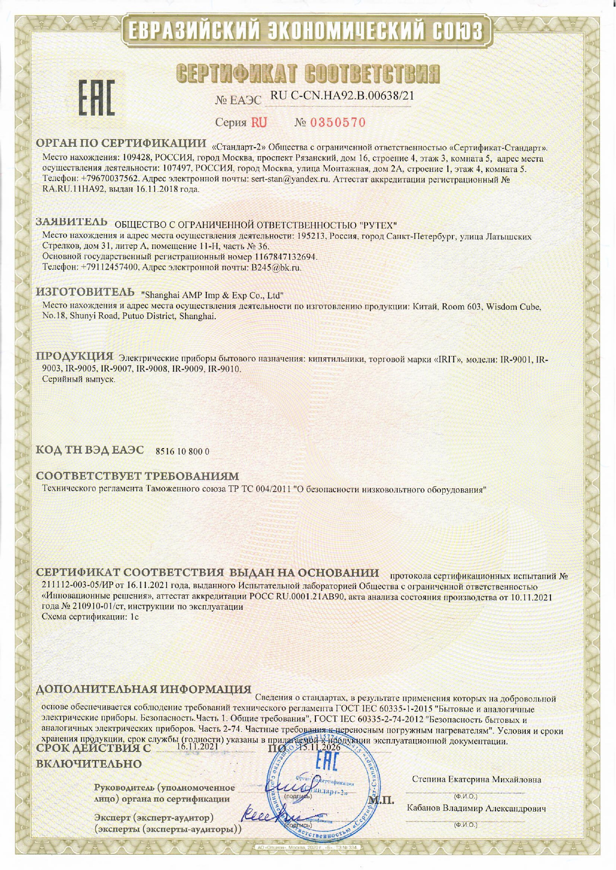 Кипятильник ИРИТ 0,5кВт