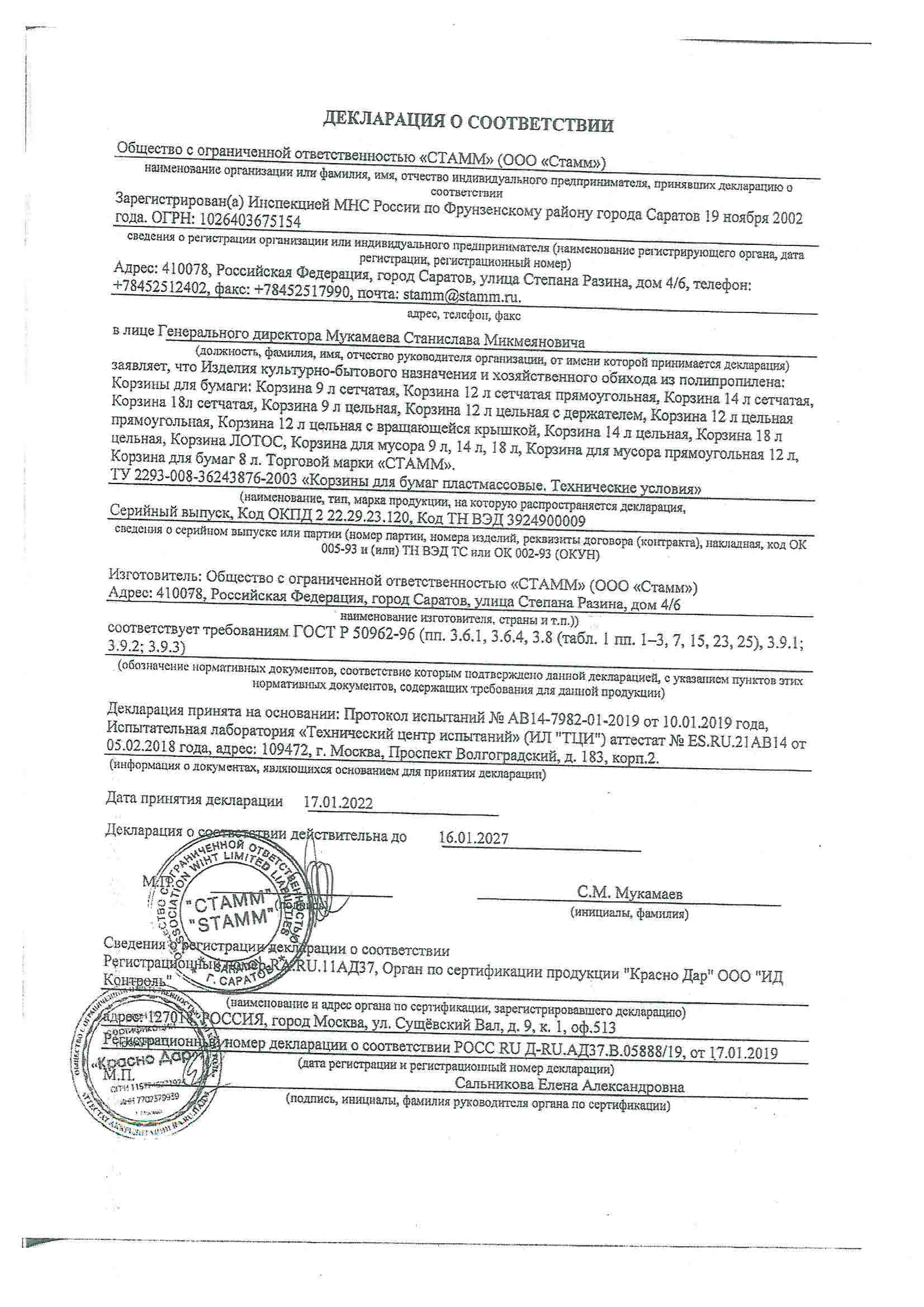 Корзина для бумаг 12л СТАММ цельная черная с держателем КР11