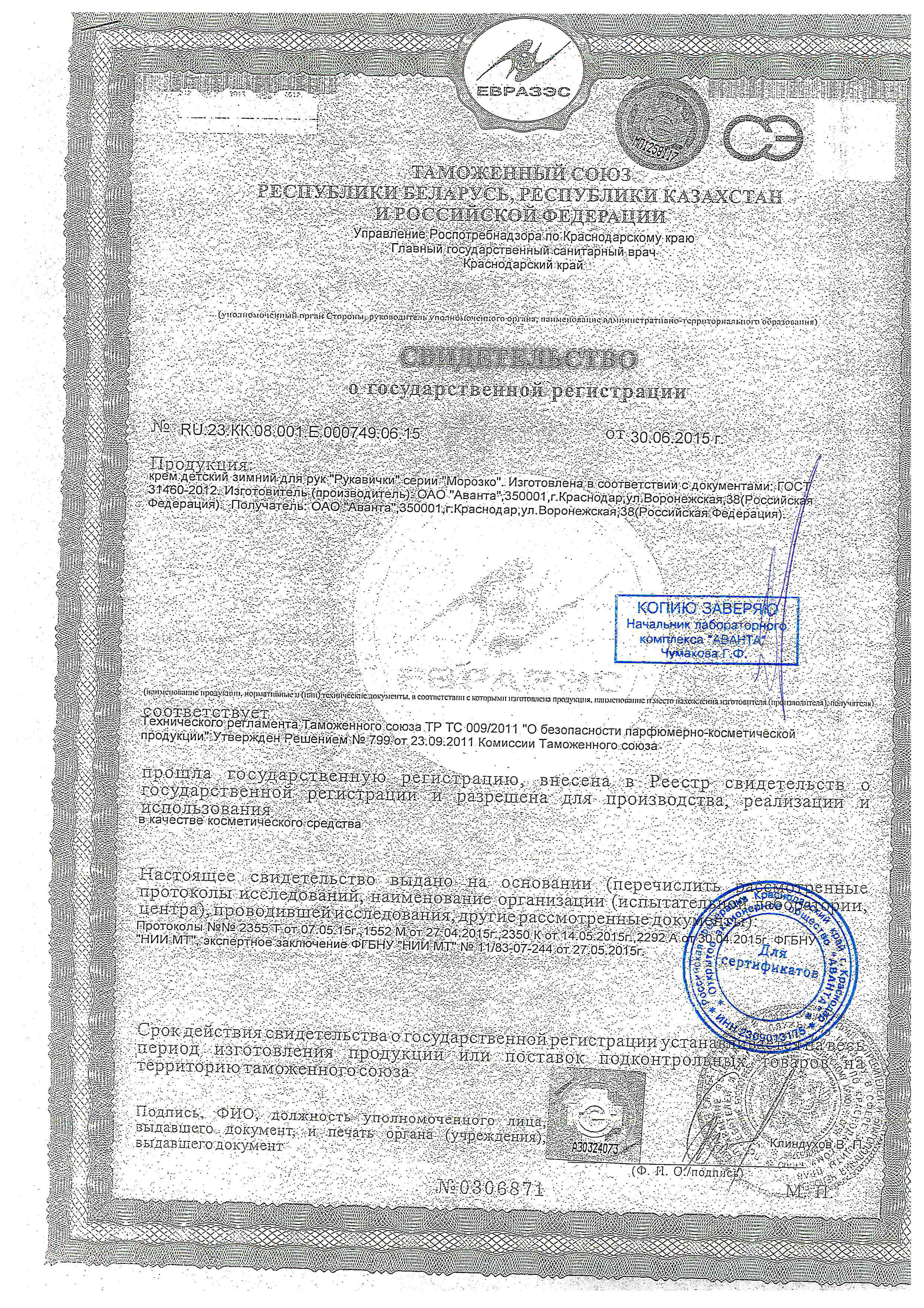 Крем детский МОРОЗКО 50мл зимний лам туб