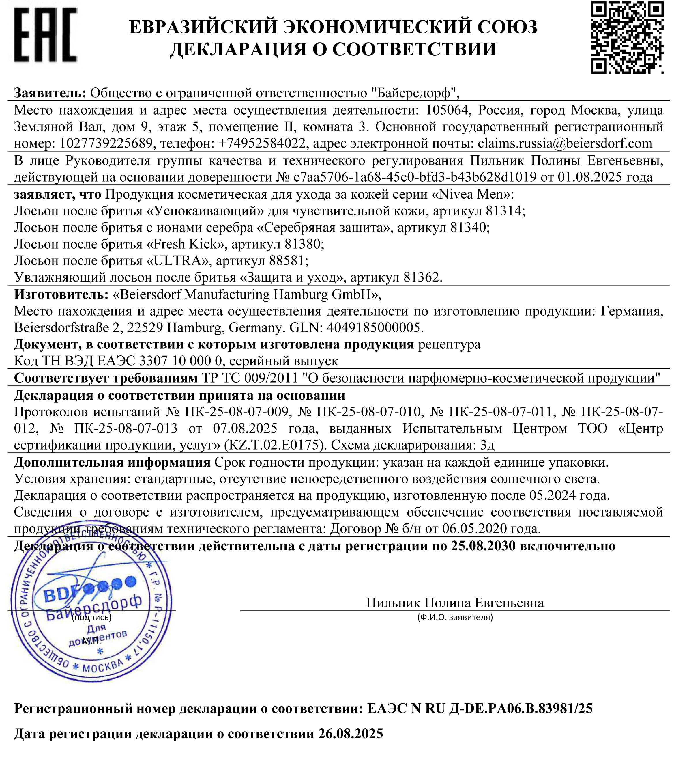 Лосьон после бритья НИВЕЯ 100мл для чувствительной кожи After Shave